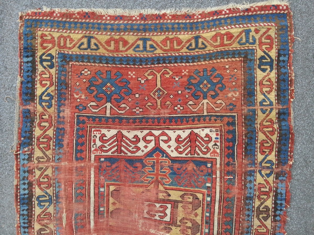 Fachralo Prayer rug. 100 x 157 cm, second half 19th. a damaged beauty in as found condition.