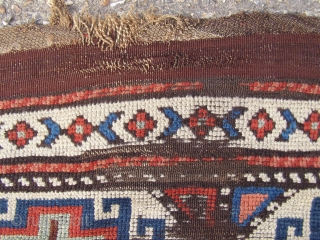 An East Anatolian 'Memling Gul' rug, probably mid 19th century, 245 x 111cm. Deep, saturated colours. Corroded brown and some damage. Feels early.