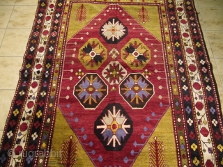 Lively Lambalo Kazak. Beautiful green corners. Very decorative. Age:ca.1910 Large Size:ca.250x160cm / 8'3''x 5'3'' Good overall condition.