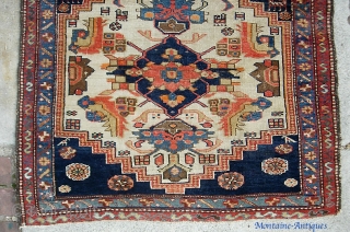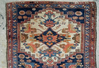 Karaja. 3 ft 9 x 6 ft 1 inches. a real old piece with wool weft. a super decorative rug with some non-offensive orange and 20 other good colors. Unusual design with two ivory medallions, and various Northwest/Caucasion motifs. $20 shipping in us.