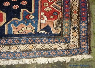 Old Persian. 4 ft 7 x 7 ft 1 inches. Decorative old rug with sensational colors. Dated in several places and looks like they were aiming to say 1300. That would put it around late 19th century and that seems about right. Rug is definitely at least 100 years old. Pretty nice condition tho not square. $25 shipping in us.