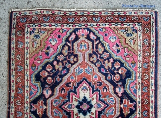 Sarouk pushti. 22 x 30 inches. Bright, bold, very decorative. i dont know where you can find these little Sarouks cheap. Seems like you have to either ante up... or you aint getting it. $15 shipping in us.