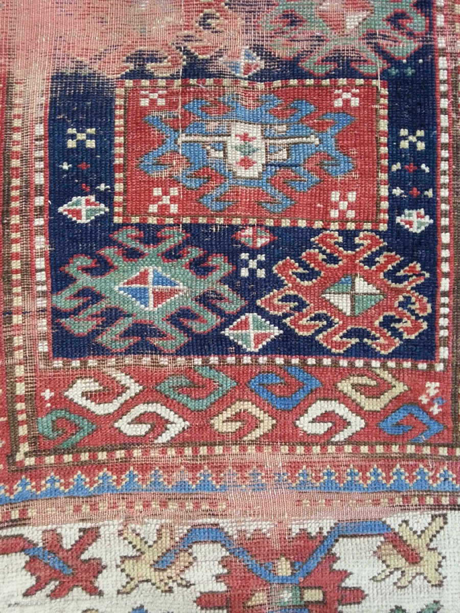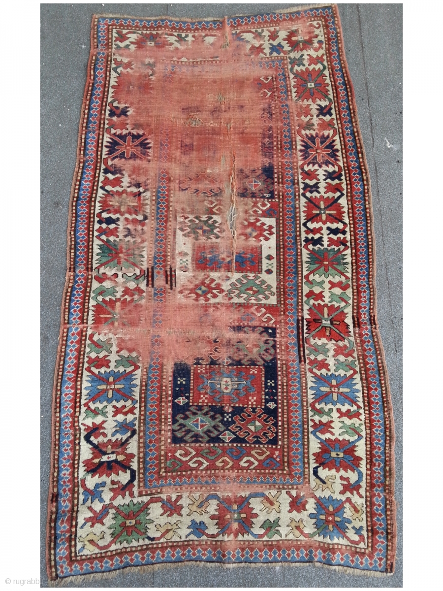 Kasak, damaged (including some strange restorations) and partially very worn, beautyful colors, 123 x 230 cm