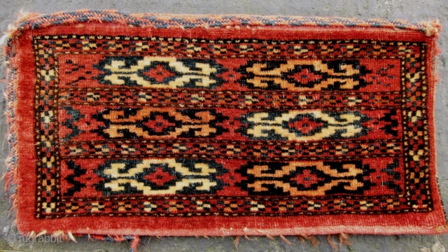 With remnants of decorative platted selvedge chord. Red flatwoven back intact, Pile pretty good. Photos taken outside.
