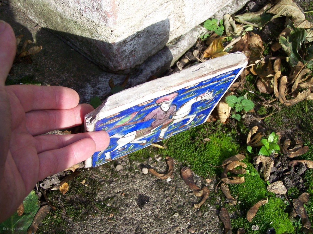 19th.century Qajar relief moulded fritware ceramic tile - i have adjusted slightly the colour of the main image to replicate the tile's true colour more accurately. i would describe the ground colour as 'rich indigo-violet' as opposed to an 'ultra-marine' which the other images may suggest, (repaired crack to lower right hand corner, chips to left hand corners), 16.5 x 16.5 x 2cm