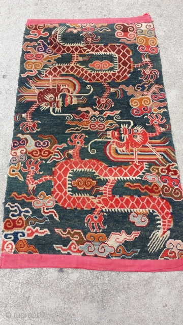 Tibetan double dragon carpet. Early 20th century. size 158cm * 86cm(62 inch* 34 inch)