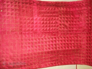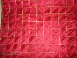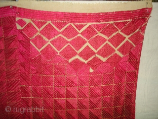 Phulkari From West(Pakistan)Punjab.India.known As Wedding Thirma(Pink)Bagh.Rare And Early Thirma(Pink)Bagh.Showing the Embroidery change for Nazar in the Right Corner(DSC05378 New).