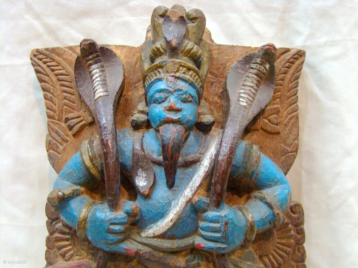 In India, Indonesia and the rest of Southeast Asia the eagle symbolism is represented by Garuda, a large mythical bird with eagle-like features that appears in both Hindu and Buddhist mythology as the vahana (vehicle) of the god Vishnu. Garuda became the national emblem of Thailand and Indonesia; Thailand's Garuda is rendered in a more traditional anthropomorphic mythical style, while that of Indonesia is rendered in heraldic style with traits similar to the real Javan Hawk-eagle.