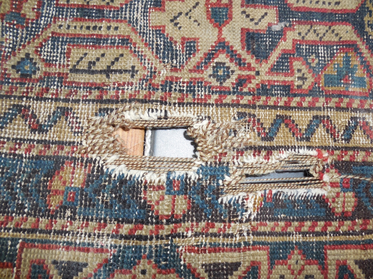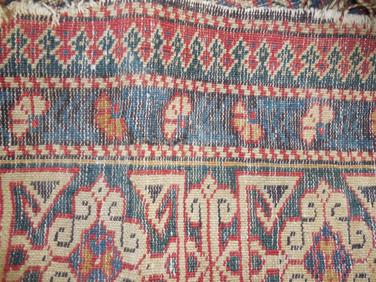 Pre-1900 Konaghend Kuba, 50 inches x 63 inches. Dusty, dirty and ravaged. i bought this old piece in Eau Claire, Wisconsin about 40 years ago and it's time to pass it on.