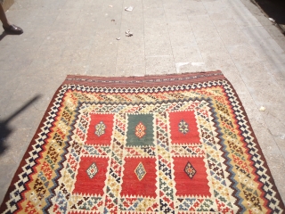 Qashqai Kilim with supereb Natural colors and very fine weave,very good condition,all natural colors,very nice bold design.Size 7'9"*5'7".E.mail for more info and pics.