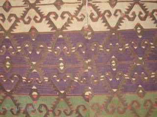 Fine Anatolian Kilim, large fragment with fantastic purples and greens, four blues, great color range, probably Konya area. size= 4'11"x6'10"