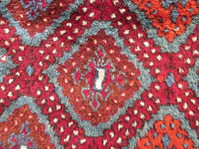 Antique East Anatolian rug in good condition, some small repairs and minor mothing. 250x127 cm. Long shiny wool and nice colours.
