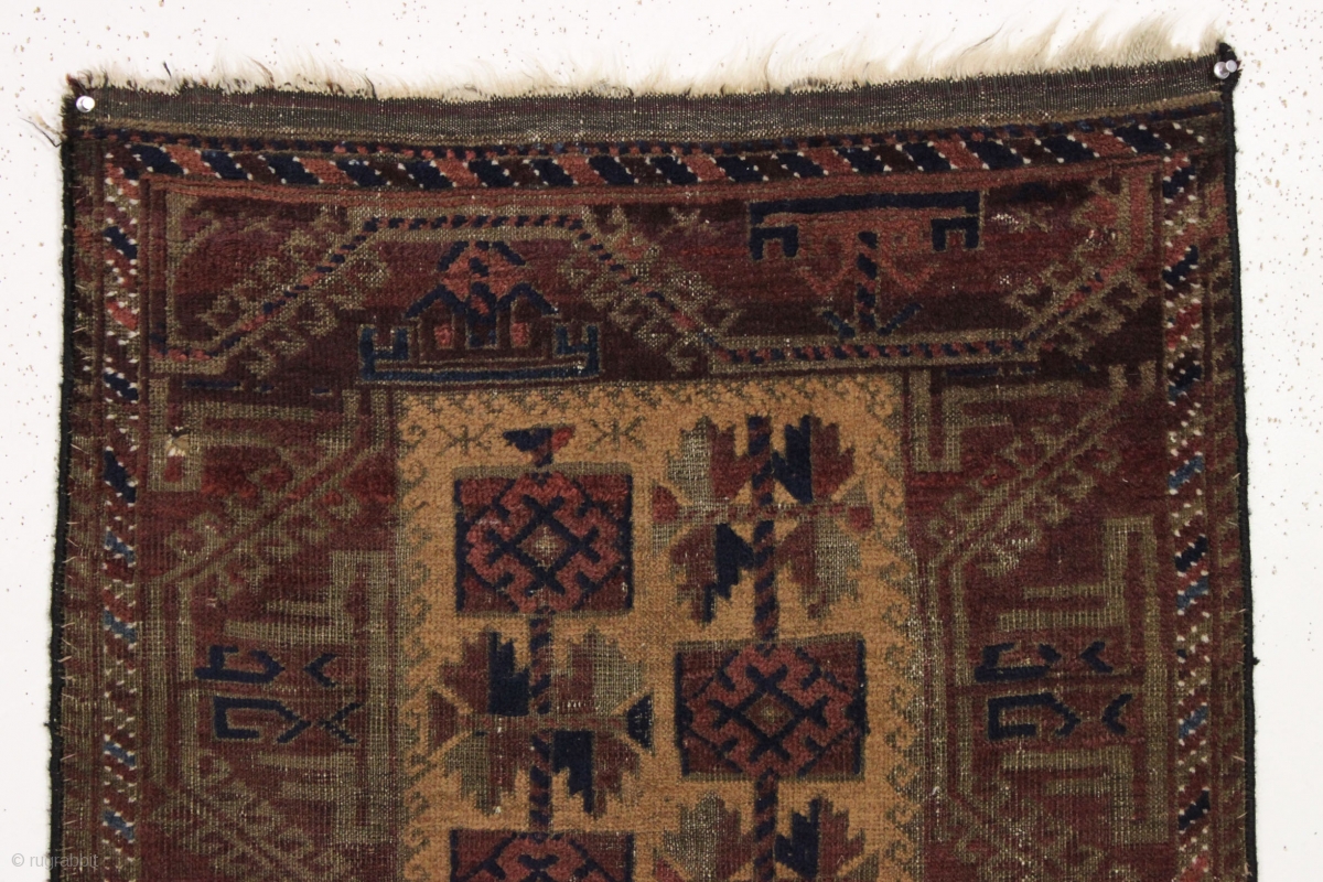 Antique baluch rug. Interesting design. Fair condition with some brown oxidation. 19th c. 2'9" x 4'10"