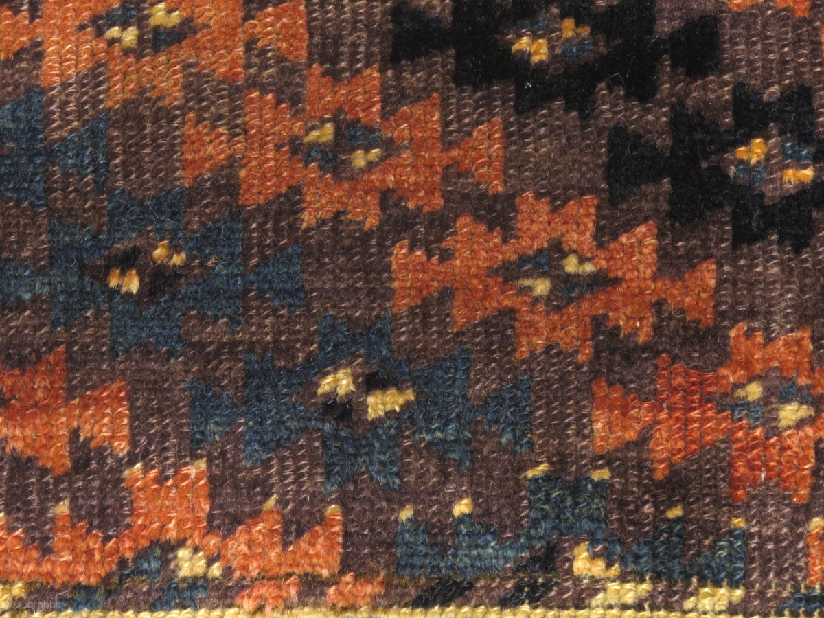Turkmen Yomud Small Torba with back. Recently dusted and hand washed . The Size is 1" by 2'5". Inv. 119241. For More Pics See https://flic.kr/s/aHsjVNe8ck