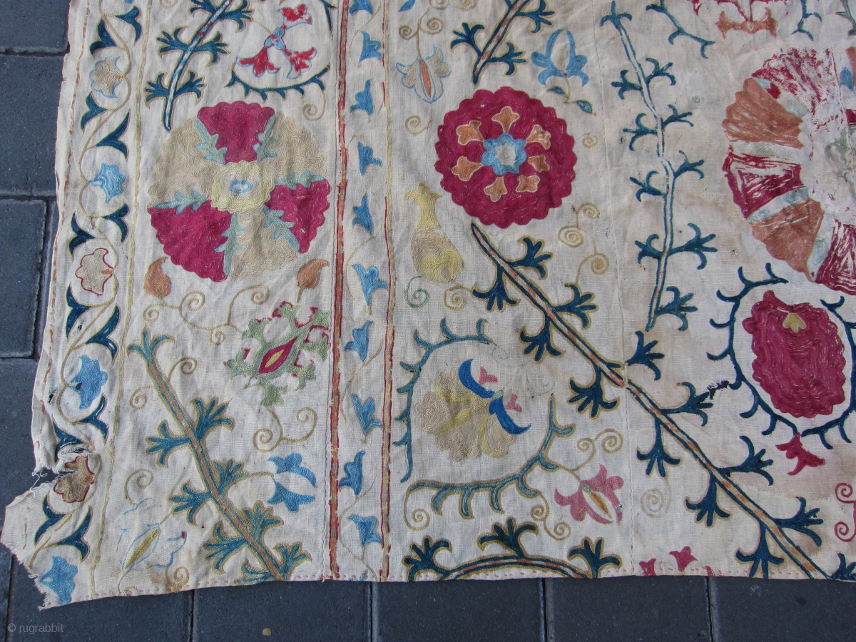 antique uzbek nim suzani fragment . Size:160x160-cm / 62.9x62.9-inches more info please mail me