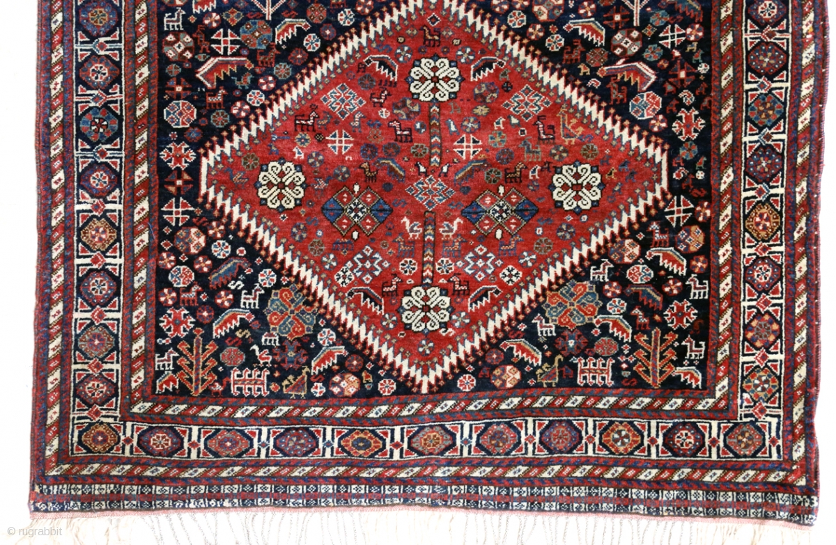 Antique Qashqaï rug, circa 1880. 134 x 232 cm. Professionally rewoven fringes, one repair in central medallion (picture 9), otherwise full fine pile allover (quite rare nowadays). Pleasant to touch and watch.