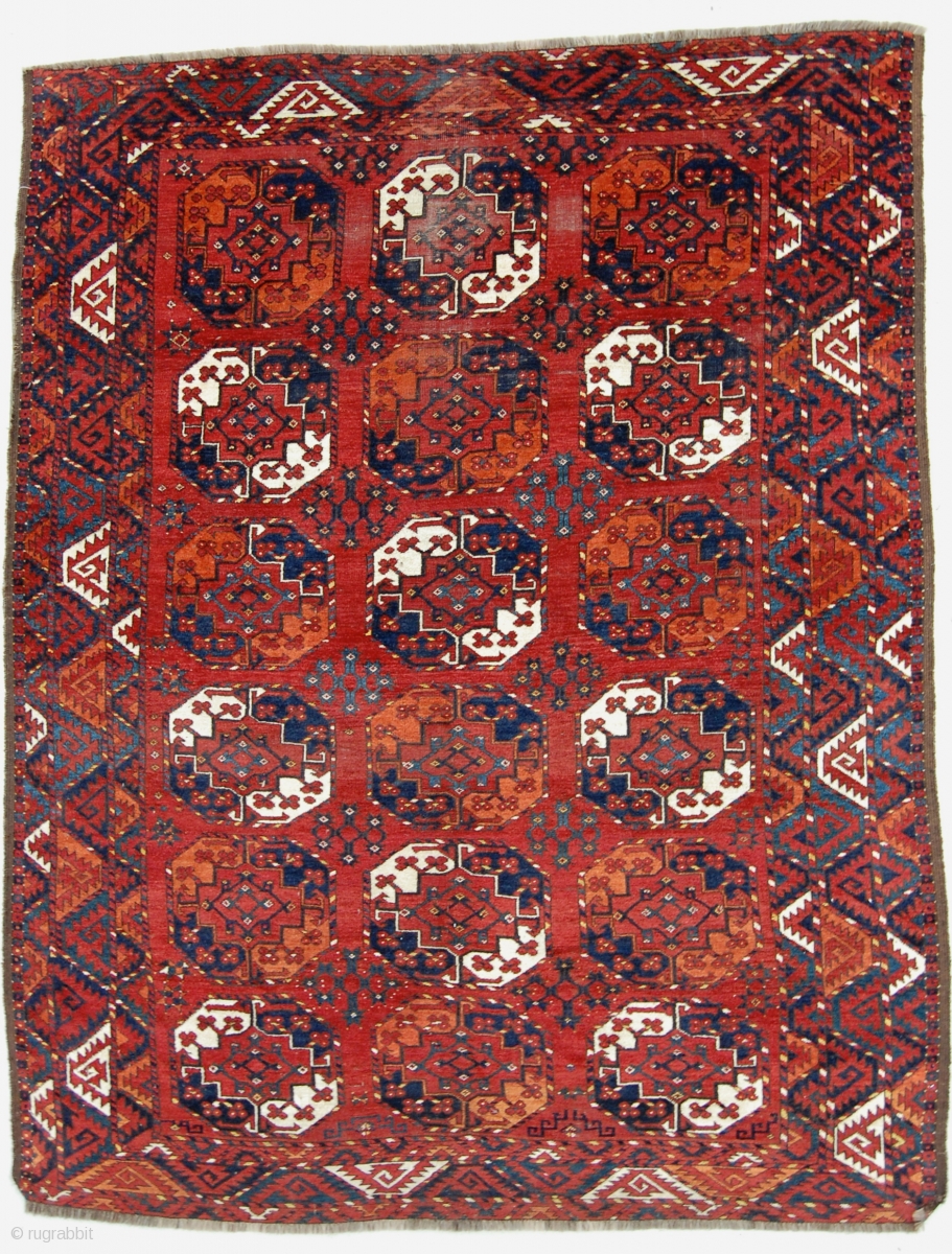 6'10"x8'7" Ersari main carpet.Good color, original selvages, some wear and end reduction.