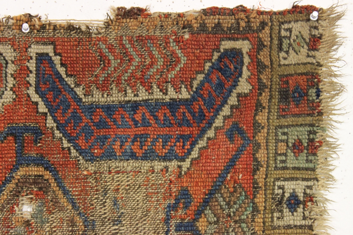 antique turkish saz leaf yastik. "As found", dirty and abused but more or less complete. Appears to have all good natural colors. 19th c. 21" x 29"