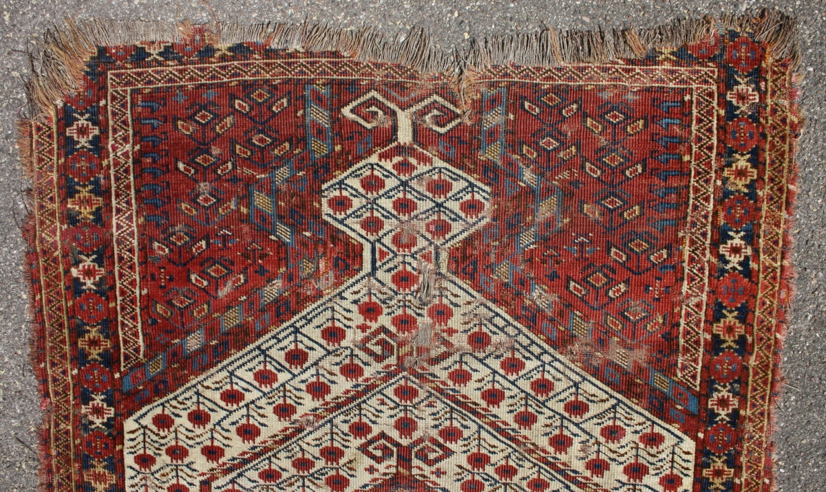 Early Beshir prayer rug , with rare design and silk Highlights, size:184x107cm