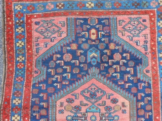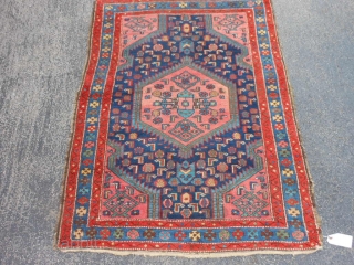 Persian Hamadan, 3-7 x 4-9 (1.09 x 1.45), early 20th century, good condition, good pile, has original selvage both ends, edges need some wrapping, nice colors and design, i washed this rug.