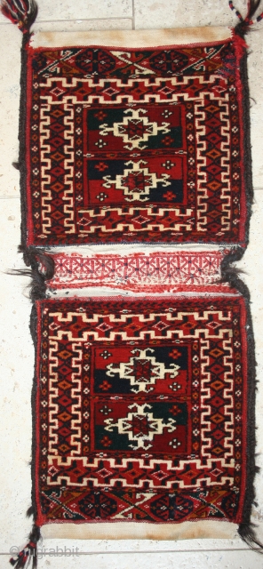 Delightful Tekke chante pair, early 20th century.Very fine weave, not the oldest, but not the most common...No colour run or tipfading, some old "repair" to one corner, and central panel. 10" by 23"