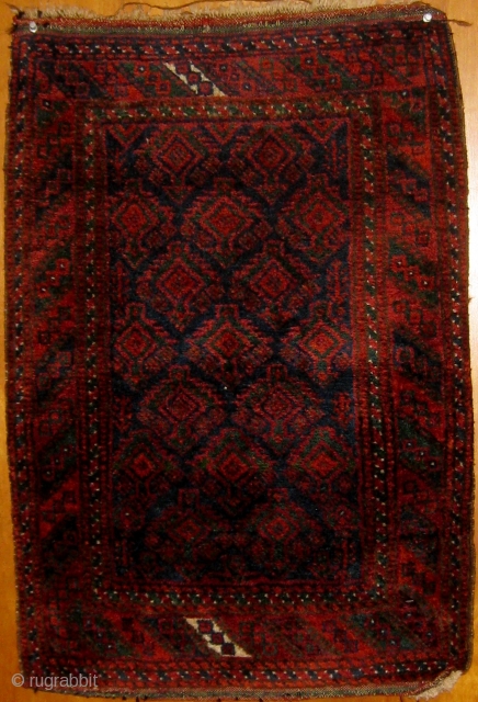 Wonderful antique Baluch balisht with full pile, original ends and sides, all natural colors including a beautiful green, soft and silky wool. Circa 1890-1910. Roughly 20" by 30". Please ask for additional photos.