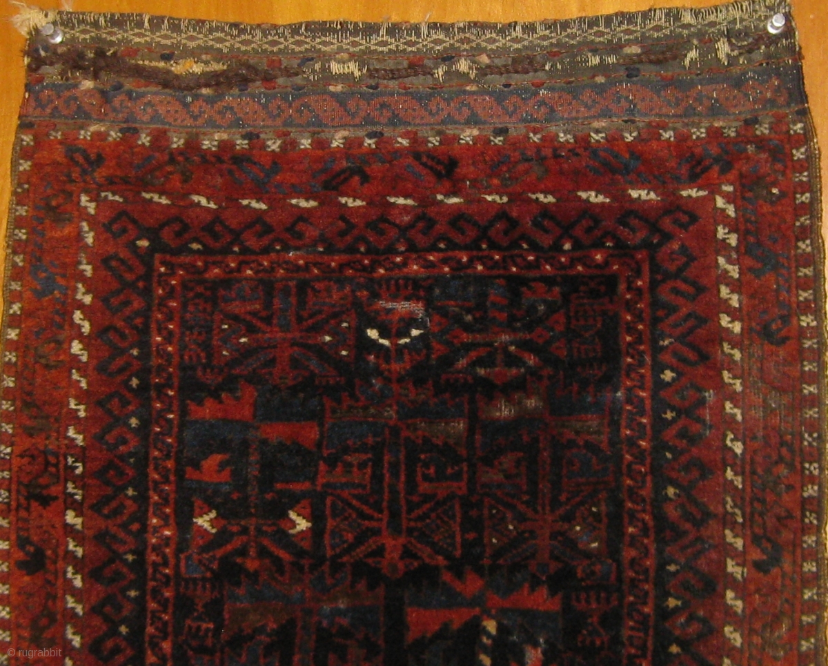 Finest, tightest Baluch balisht, 19th Century, complete ends, mostly complete selvages, minor areas of moth damage, one small hole in the lower half, silk highligts. Extremely difficult to photograph properly. 18" by 38". Please ask for additional photos.