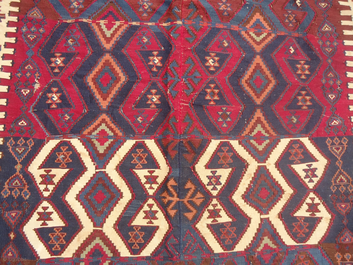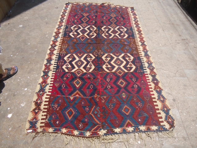 Aksaray Kilim with great natural colors and early age,very nice design,fine weave and all natural colors,As fond without any repair or work done.Size 9'5"*5'2".E.mail for more info and pics.