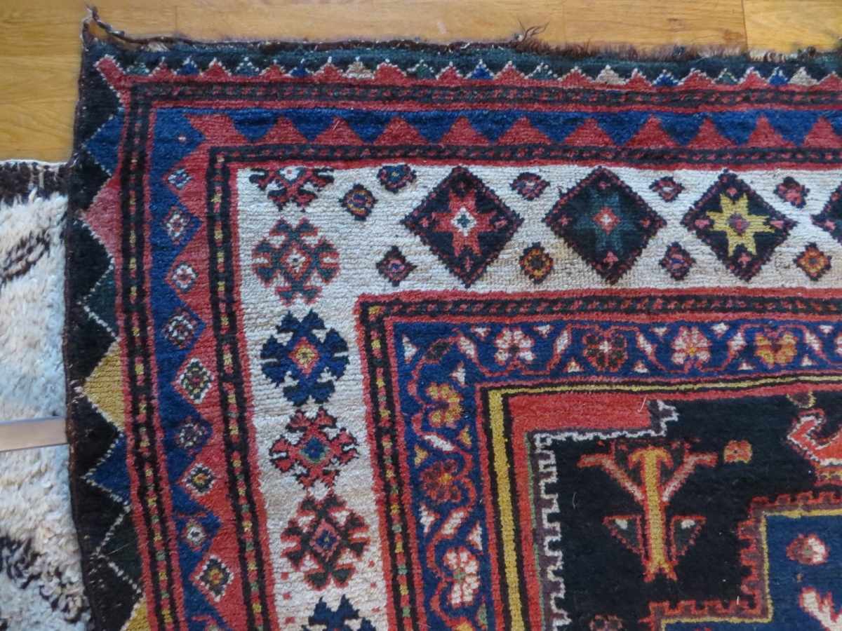 Very old Chahar Mahal rug, 240x156, could be from Gahrû village, see Chahal va Bakhtiâri, Village, Workshop & Nomadic Rugs of Western Persia, page 196, plate 153, by Peter Willborg. This rug feels very old and it has at least 15 different colours. Hard wear at some places and some foundation showing.