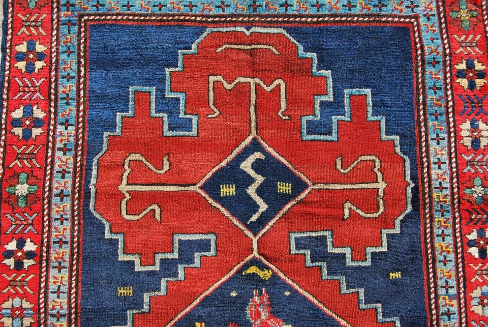 Karabagh rug, cm 235x118, ft 7.7x3.8, early 20th century or older, lovely pattern, great dyes, some old restorations, in good conditions.