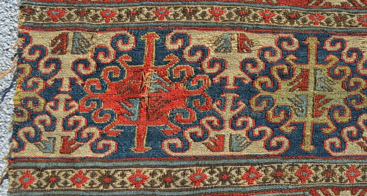 Caucasian Soumak fragment with one small repair.