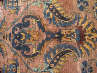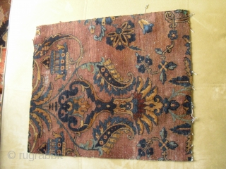 Persian Fragment (Kerman or Keshan) - 19th - great colours - shiny wool - brown slightly corroded - size: 52cm x 45cm