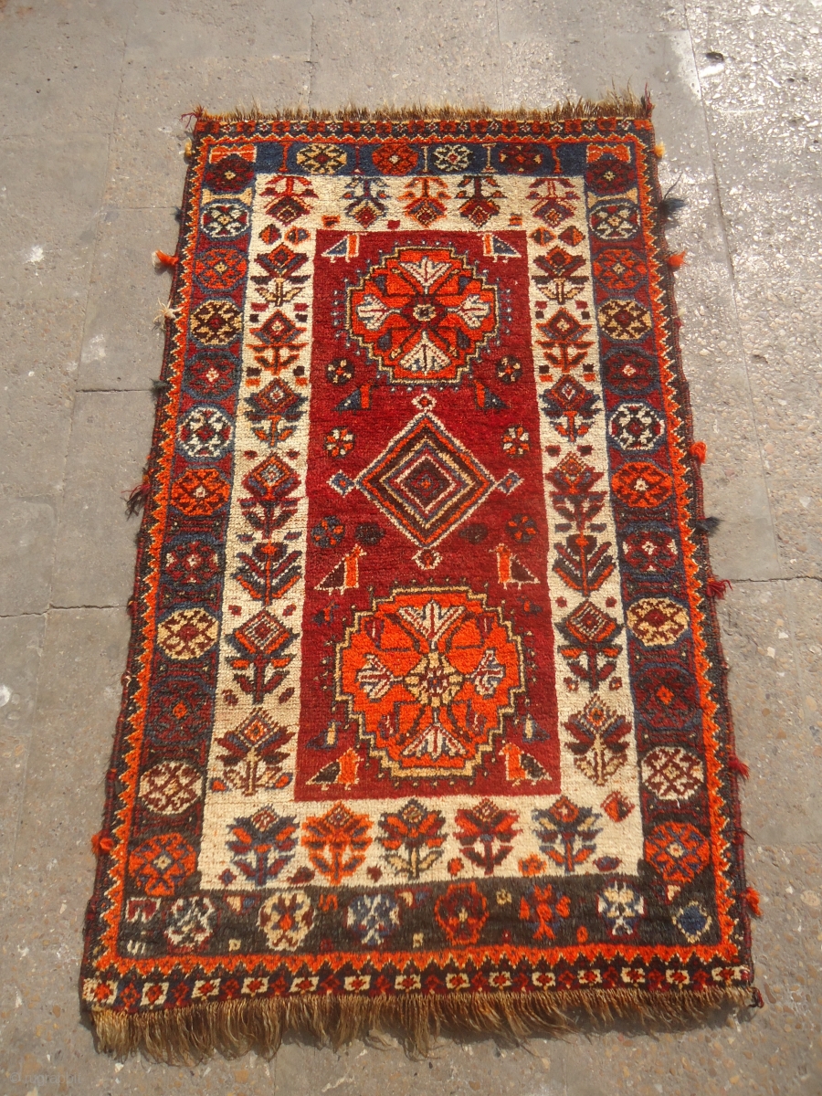 Qashqai or Shiraz rug with shiny wool,good design and excellent condition.Size 4*2'5".E.mail for more info and pics.