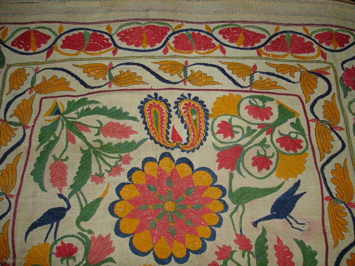 Kantha Quilted and embroidered cotton kantha Probably From East Bengal(Bangladesh)region.India.Its size is 78cmX85cm(DSC01842 New).