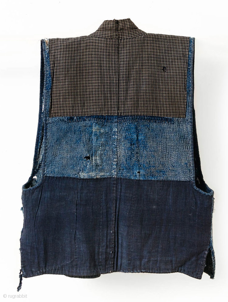 Upon closer inspection, the vest has a remarkable dense and dizzying array of sashiko embroidery in a repeating step pattern. The dense running stitch is used to reinforce the garment and layer together the pieces of cloth. Wonderful texture and pattern!