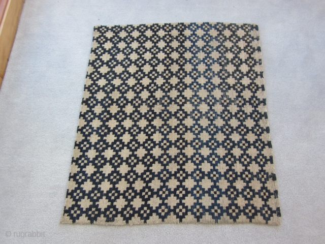 Tibetan mat about 30 by 35 inches, very fine handle, condition good. See closeup shot for variation in the indigo.