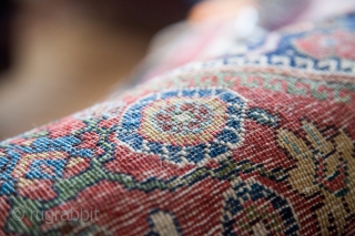 4x6 Qashgulli. As found, needs cleaning. Lots of colors, and shades in those colors.