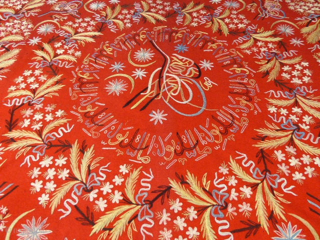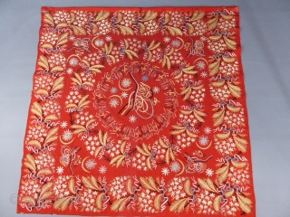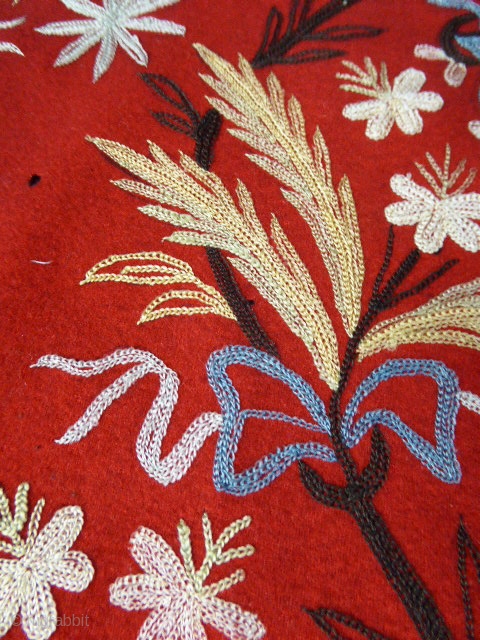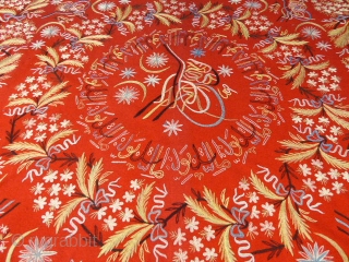 Very nice ottoman turkish textile ; Chain stitch embroideries on red woolen felt. Many very little moth holes. it's complete, no tears, no durty. It needs to be lined. 127 cm x 127 cm.