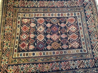 This is an antique caucasian Chi Chi rug that is from circa late 19th century to turn of the 20th century. The rug has been fully restored and is ready to decorate your floor or yr wall. The restoration has been done by a master craftsman and some areas have been left low to keep the integrity and character of the piece (as shown in the second last picture). The rug is not perfectly square and it is also visible in the main picture. The size of this beautiful rug is 3'-5" x 4'-7".