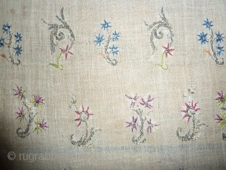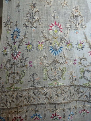 Beautiful and rare Algerian silk and metal thread embroidered shawl, very unusual design, lovely colours, 18th./ early 19th. cent., 280 x 30 cm, 9.2 ft x 1 ft.