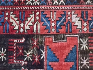 This is an antique Caucasian Shirvan from Circa 1890s-1900s. The size of this rug is 3' - 4" x 4' - 5". The rug short even pile throughout the rug with one small area showing a few knot heads. This area has been shown in the picture. The rug has all natural dyes. This is truly a collectors piece.