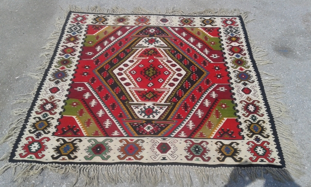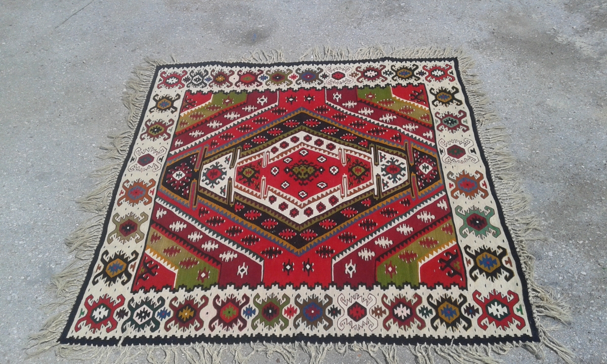 Pirot sarkoy tablecloth, measuring about 1.4 to 1.4m, aged about 90 years.