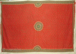 woman's Shawl Abochhini Probably Rajput Group,From Tharparkar Sindh of Pakistan.cotton with cotton Embroidery.Its size is 145cmX210cm(DSC03620 New).