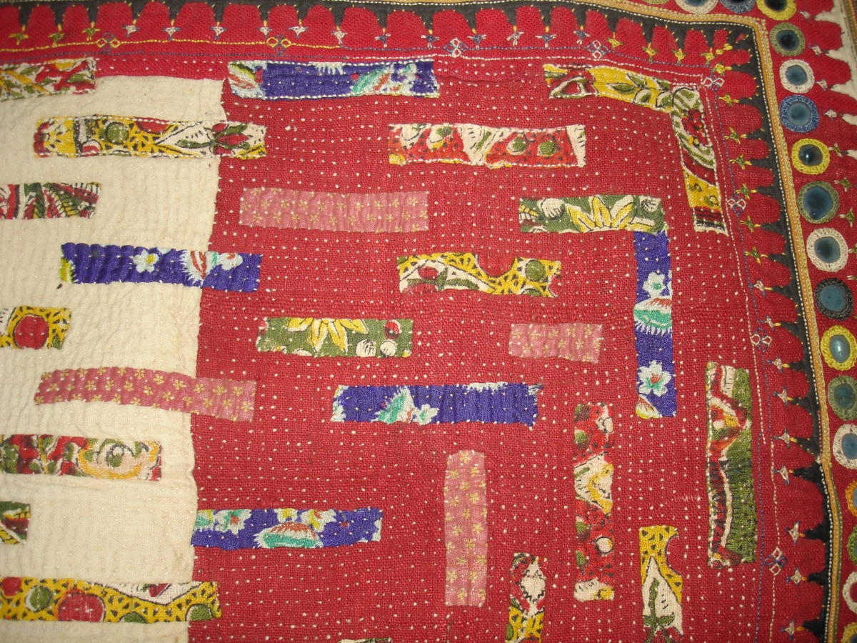 Embroidered and Printed Patch work Quilt From Dwaraka Region of Saurashtra Gujarat.India.very fine quilted and Patch work.Rare kind of Piece.Its size is 65cmX102cm(DSC04270 New).