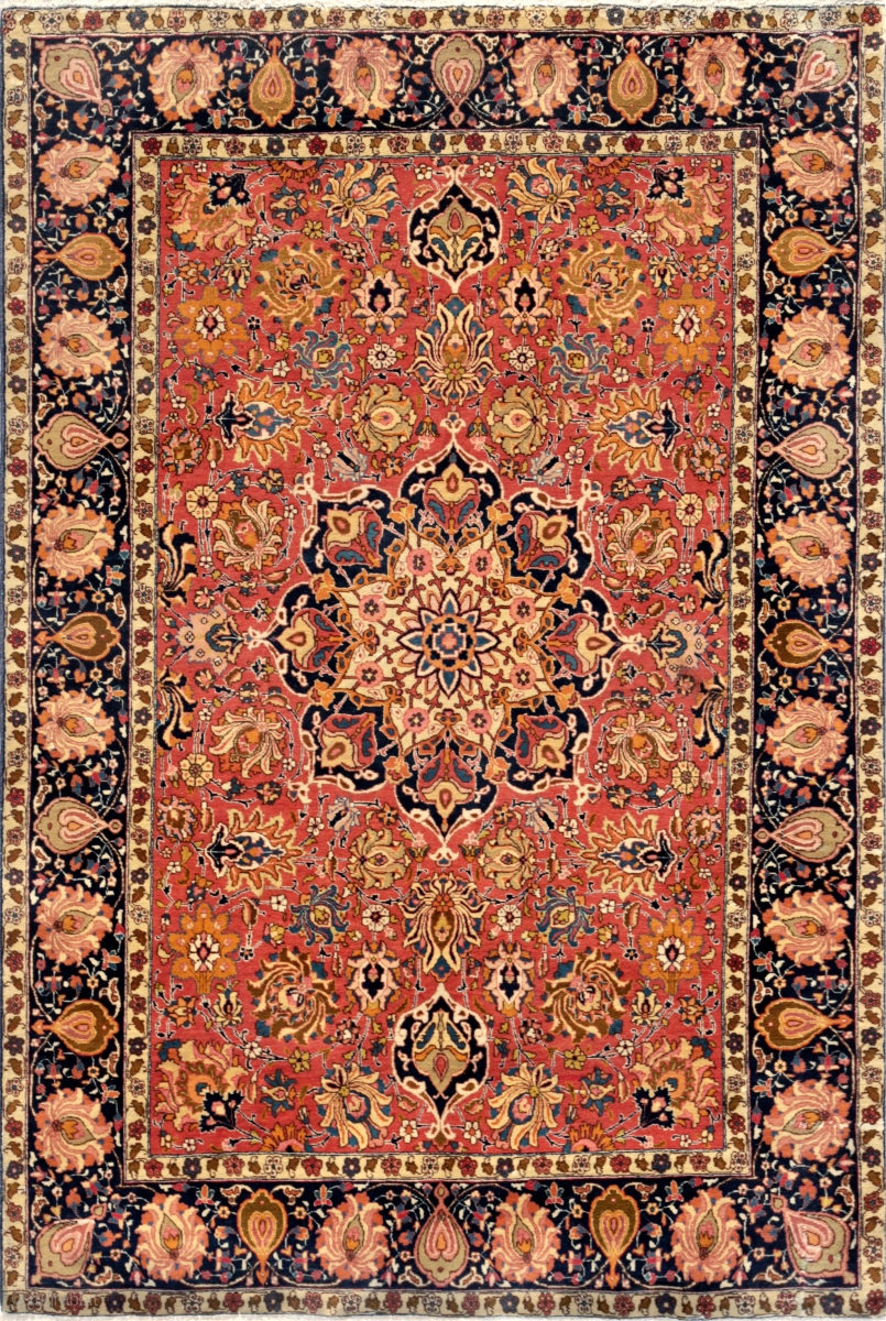 Antique Persian Tabriz woolen rug. Showcasing floral medallion with symmetry and vibrant colors. 197 x 137.
