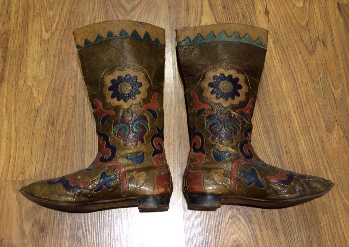 19th cent Uzbek leather boots. Beautiful colours, rare piece.