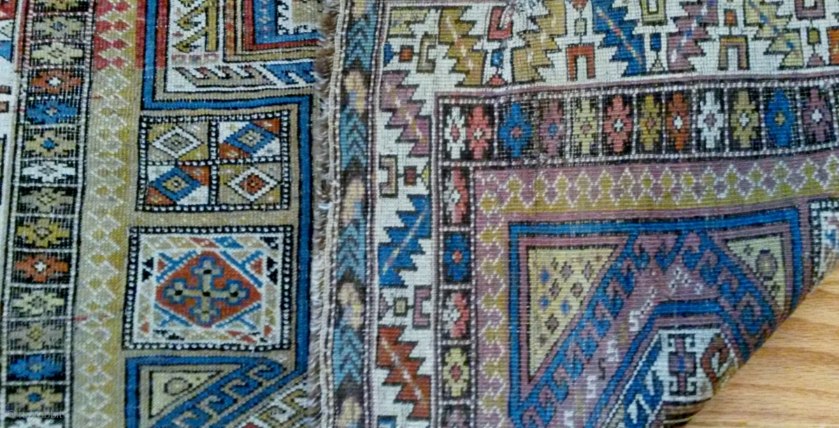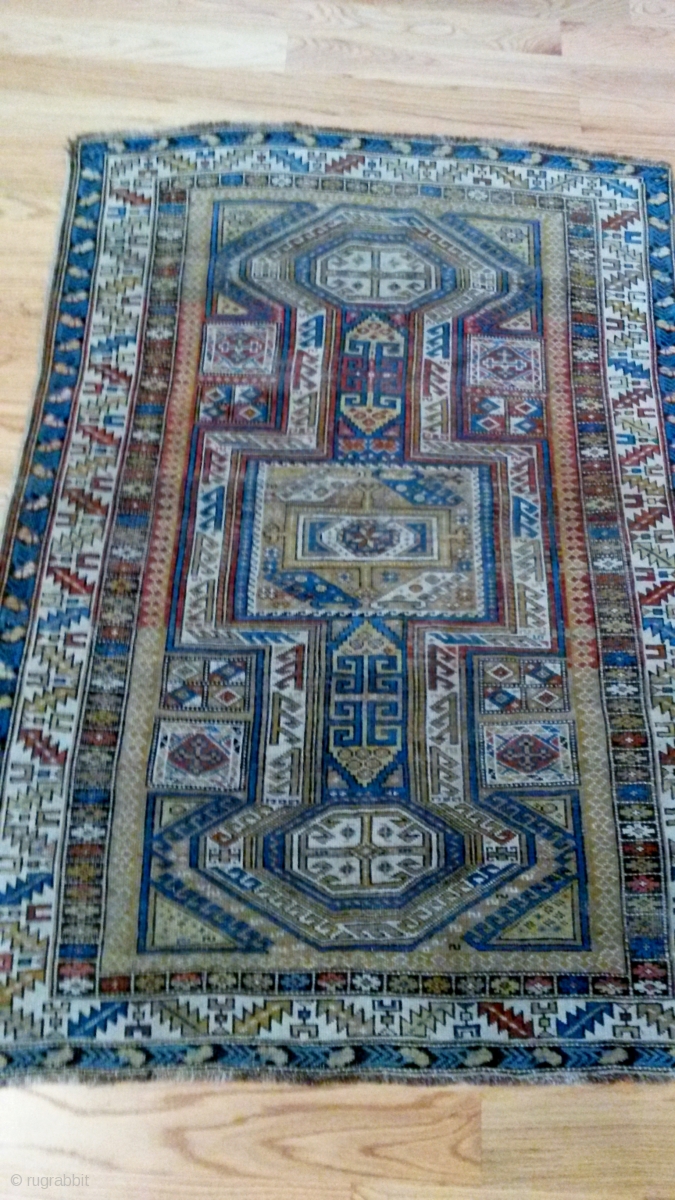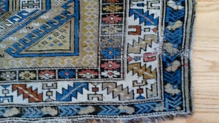 Shirvan 19th cen. 62"x44"wool on wool, keyhole pattern, needs some work ...or not,..small hole and sewn area