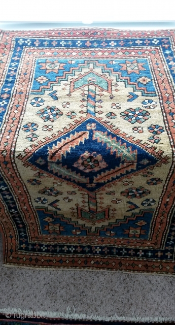 Heriz late 19th or early 20th rare smaller format, size: 48"x29" camel field ,good colors and condition , depressed warps ,..ask for more pics or info