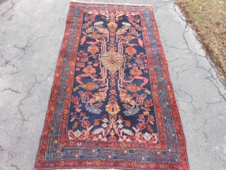 Persian Hamadan, circa 1910, 3-8 x 6-11 (1.12 x 2.11), good condition, original selvage both ends, good pile, original edging (needs little work), i washed this rug.
