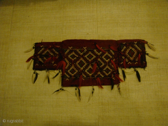 Tribal Motif/Design Pattern: Burdock plant. Colours: Maroon-Red, Green and White Design on Front face. Horizontal Stripes of the same colours on the Back face.